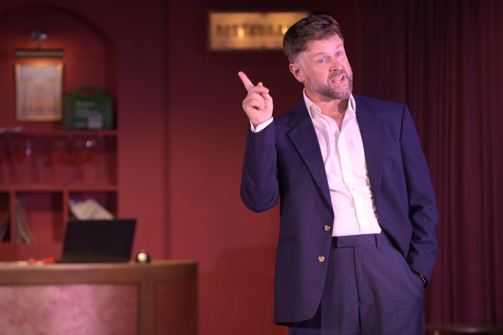 Cooney has revisited the play several times over the years, notably at the Menier Chocolate Factory in 2012, where he not only directed but also appeared as the waiter. More recently, he reworked the play for The Mill at Sonning in the 2020 version that updates the action with mobile phones, and places Richard Willey squarely within Boris Johnson’s government. It is this modern variation that we are presenting here at Frinton which loses none of its original structure or intention.